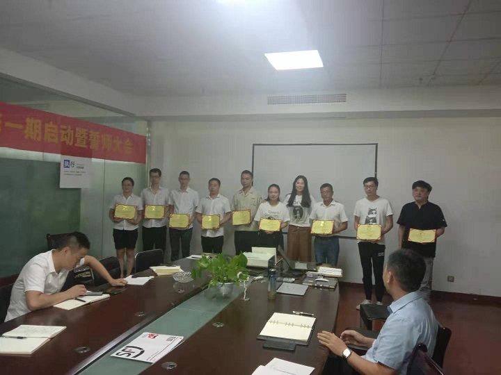 最后,由精益項目小組執行組長翁總帶領“精益生產管理”項目實施的各部負責人進行宣誓,并由包總向“精益生產項目”實施小組的執行組長、專員及各改善小組負責人頒發了聘書。